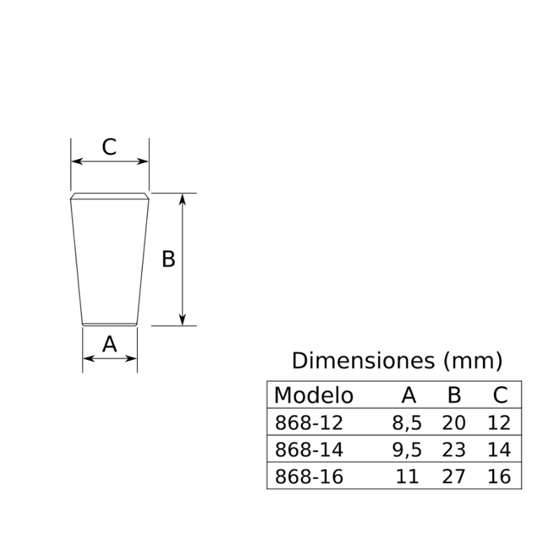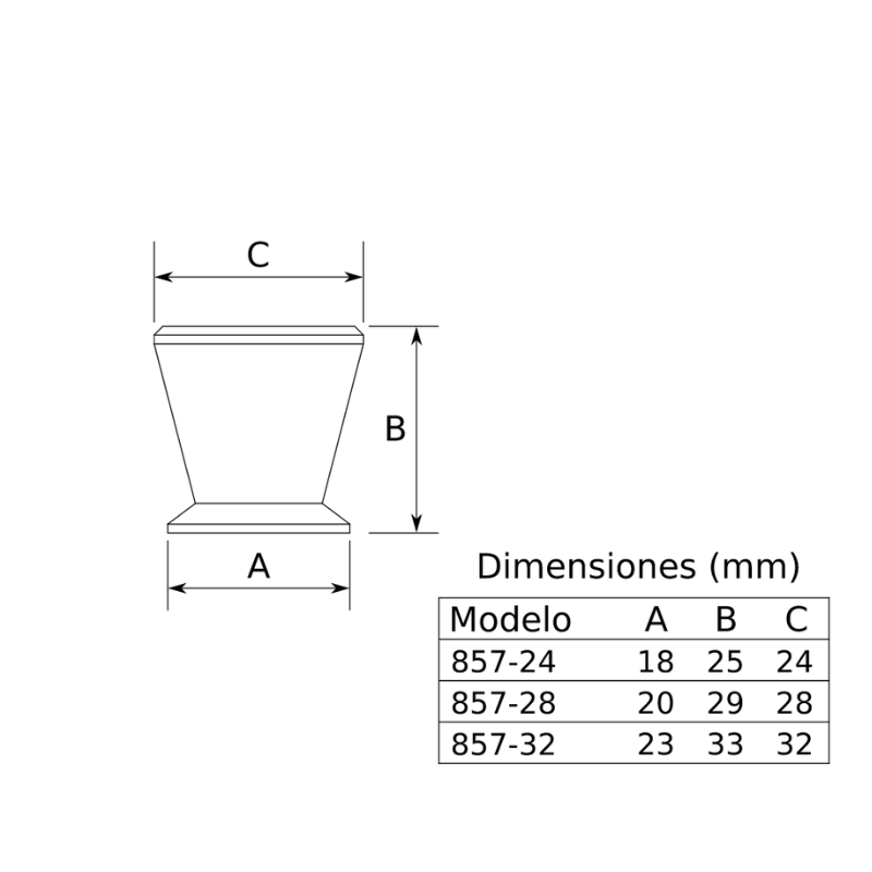 Tirador para moble cun deseño en forma de tronco de cono invertido.